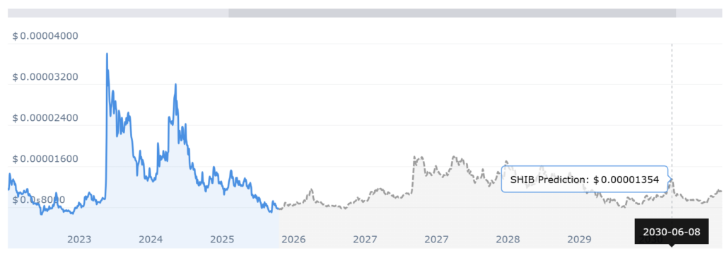 根据柴犬硬币预测统计数据到 2030 年 12 月,SHIB 可能会飙升至 0.00001354 美元。