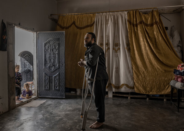 22岁的阿卜杜勒·哈利姆·哈桑和阿尔马赫穆德女士在叙利亚的货币兑换处排着队等着兑换货币。他说,他曾幻想有一天能像使用普通银行账户一样使用HesabPay,安全地接收资金、支付款项和存款。但就目前而言,HesabPay卡已经足够让他获得战后重建生活所需的资金。