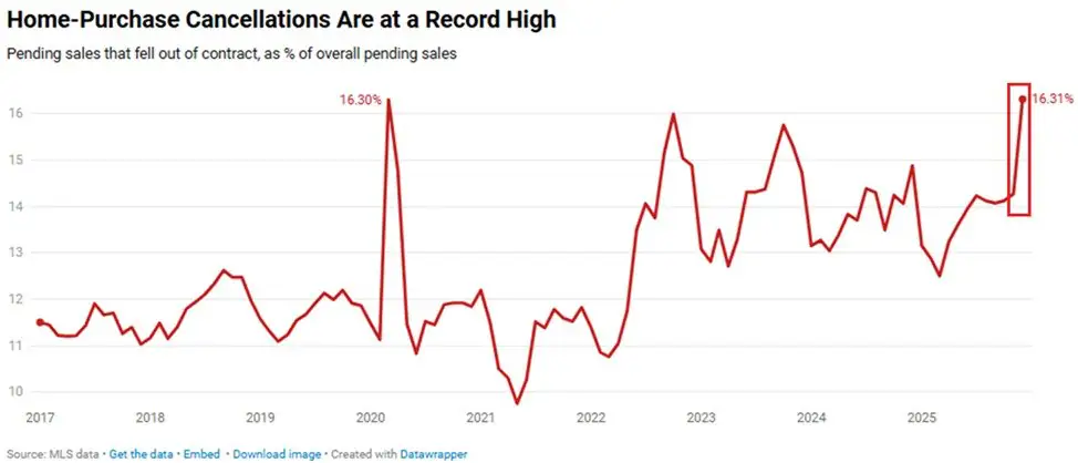 12 月份购房者取消交易的速度创下历史新高,给本已紧张的美国房地产市场带来了新的压力。