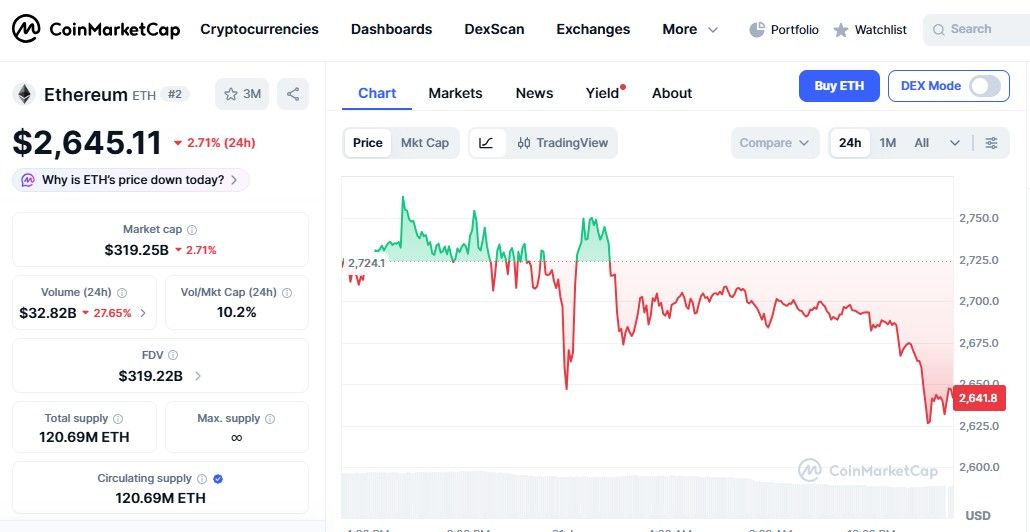 以太坊 (ETH) 最初发行时,交易价格在 0.30 美元至 1 美元之间。在其发展历程中,ETH 经历了剧烈的上涨和回调——2021 年一度突破 4800 美元,随后在市场周期中下跌,如今仍在四位数区间波动。每个阶段都反映了日益增长的采用率而不仅仅是投机。以太坊当前的价格是2,642.01 美元
