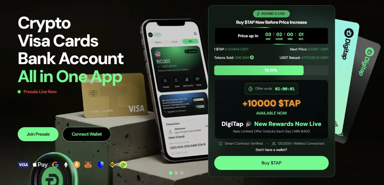 Digitap 兑现了大多数项目承诺却从未兑现的承诺。它拥有实时运行的应用程序、真正的银行级支付渠道、透明的代币机制以及经过审计的安全保障。目前已有超过 12 万个钱包接入,表明即使市场整体价格低迷,Digitap 的用户群体仍在持续增长。