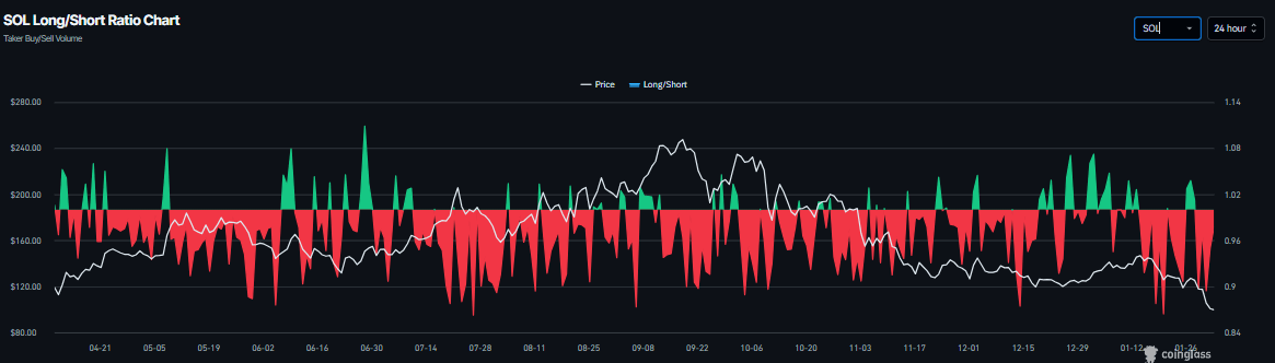 Solana (SOL) 股价延续回调势头,周一跌破 100 美元,此前一周已下跌超过 15%。衍生品数据显示空头头寸增加,融资利率为负,进一步支撑了股价的下跌趋势。...