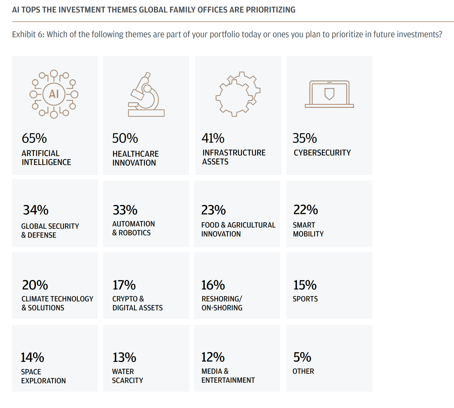 人工智能已成为全球最大家族办公室的主流投资主题,而加密货币依然仅吸引有限关注,摩根大通私人银行最新报告显示。